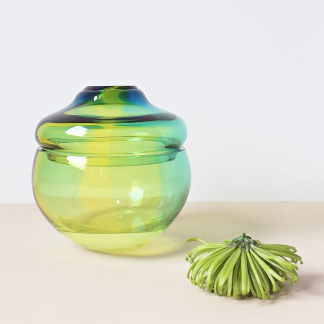 Riezebos: “In Eindhoven kwam ik natuurlijk meer in aanraking met de industriële kant van het ontwerpen en het maken in series. Maar de meer vrije vormgeving, de kunstzinnige kant, trok mij ook enorm. Op de ArtEZ heb ik daarom die kant gekozen.” De keuze om met glas en kristal te werken was een bewuste: “Glas als materiaal voor gebruiksvoorwerpen is natuurlijk iedereen bekend. Maar mondgeblazen glas en kristal als kunstvoorwerpen heeft pas de laatste decennia een vlucht genomen.” Bridging the gap between art and appliance is haar filosofie.